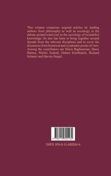 This volume comprises original articles by leading authors - from philosophy as well as sociology - in the debate around relativism in the sociology of (scientific) knowledge. Its aim has been to bring together several threads from the relevant disciplines and to cover the discussion from historical and systematic points of view. Among the contributors are Maria Baghramian, Barry Barnes, Martin Endreß, Hubert Knoblauch, Richard Schantz and Harvey Siegel.