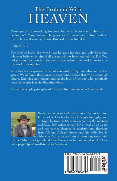 Every person is searching for love, but what is love and what can it do for me? Many are searching for love from others or from with in themselves and come up short. But real love is found in: John 3:16,17 For God so loved the world that he gave his one and only Son, that whoever believes in him shall not perish but have eternal life. For God did not send his Son into the world to condemn the world, but to save the world through him. Love has been expressed to all of mankind through one dramatic act of grace. We all have the chance to experience a love that will surpass all others. Knowing and understanding the love of the one who genuinely loves all people is truly liberating for all. Learn the simple principles of love and find the one who loves us all. Steve is a semi retired Electronics Technician and father of 3. His hobbies include photography and vintage electronics. Steve has served in the military and local law enforcement, for a total of 22 years and has earned degrees in ministry and theology from Vision College. Steve and his wife live in Adelaide Australia and enjoy spending time with their children and grandchildren. Steve can be contacted on his face book page OpenWordMinistriesAustralia.