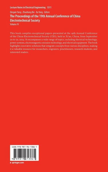 This book compiles exceptional papers presented at the 19th Annual Conference of the China Electrotechnical Society (CES), held in Xi'an, China, from September 20 to 22, 2024. It encompasses a wide range of topics, including electrical technology, power systems, electromagnetic emission technology, and electrical equipment. The book highlights innovative solutions that integrate concepts from various disciplines, making it a valuable resource for researchers, engineers, practitioners, research students, and interested readers.