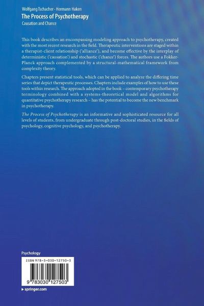 This book describes an encompassing modeling approach to psychotherapy, created with the most recent research in the field. Therapeutic interventions are staged within a therapist-client relationship ('alliance'), and become effective by the interplay of deterministic ('causation') and stochastic ('chance') forces. The authors use a Fokker-Planck approach complemented by a structural-mathematical framework from complexity theory. Chapters present statistical tools, which can be applied to analyze the differing time series that depict therapeutic processes. Chapters include examples of how to use these tools within research. The approach adopted in the book - contemporary psychotherapy terminology combined with a systems-theoretical model and algorithms for quantitative psychotherapy research - has the potential to become the new benchmark in psychotherapy. The Process of Psychotherapy is an informative and sophisticated resource for all levels of students, from undergraduate through post-doctoral studies, in the fields of psychology, cognitive psychology, and psychotherapy.