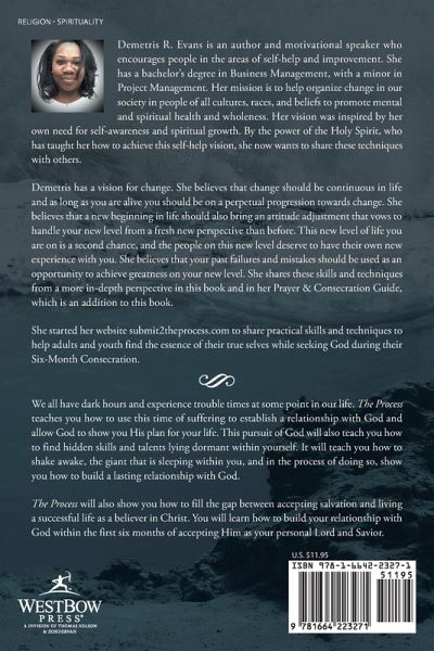 We all have dark hours and experience trouble times at some point in our life. The Process teaches you how to use this time of suffering to establish a relationship with God and allow God to show you His plan for your life. This pursuit of God will also teach you how to find hidden skills and talents lying dormant within yourself. It will teach you how to shake awake, the giant that is sleeping within you, and in the process of doing so, show you how to build a lasting relationship with God. The Process will also show you how to fill the gap between accepting salvation and living a successful life as a believer in Christ. You will learn how to build your relationship with God within the first six months of accepting Him as your personal Lord and Savior.