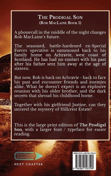 A phonecall in the middle of the night changes Rob MacLaine's future. The seasoned, battle-hardened ex-Special Forces operative is summoned back to his family home on Achravie, west coast of Scotland. He has had no contact with his past after his father sent him away at the age of sixteen. But now, Rob is back on Achravie - back to face his past and encounter friends and enemies alike. What he doesn't expect is an explosive reunion with his older brother, and the dark secrets that shroud his childhood home. Together with his girlfriend Justine, can they unravel the mystery of Hillcrest Estate? This is the large print edition of The Prodigal Son, with a larger font / typeface for easier reading.¿
