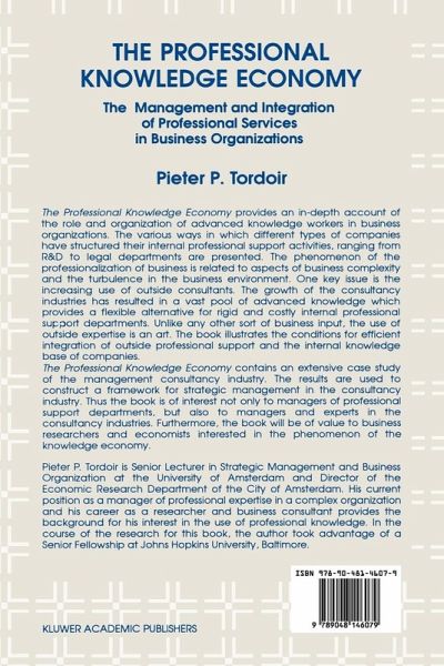 Knowledge is the great fifth production factor in our economy, besides capital, labour, land, and entrepreneurship. Perhaps it is the most precious of the five factors, because it takes so much effort and money to keep it well-nourished. Perhaps it is the most strategic of the five factors, because we depend on it to develop business, the economy, and the world at large in a balanced and sustainable direction. Knowledge is certainly one of the least understood factors and one of the hardest to grasp. This book concerns the largest pool of knowledge, which is professional knowledge. This form of knowledge, albeit being very close to business practice, is nonetheless least understood of all. Economists have tried to grasp the knowledge factor, measuring and assessing it in terms of the pools of R&D-expenditures, patented innovations, licences, and other forms of knowledge that can be documented. The pool of professional knowledge is not among these, because it is tacit. It can onlyexist in our head; it is intrinsically tied to people --the professionals. Professional knowledge is the articulation of scientific and documented knowledge, and the individual experience and dexterity of individuals. It is for this reason that it is so hard to grasp; while for this very same reason, it is so close to the life of business, to the shopfloor of our advanced economies.