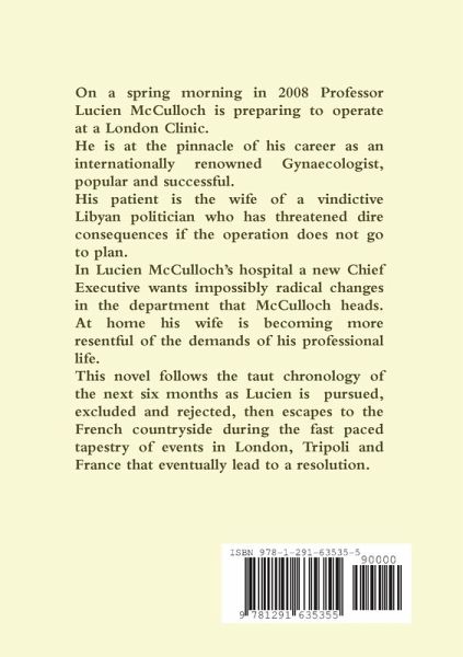 On a spring morning in 2008 Professor Lucien McCulloch is preparing to operate at a London Clinic. He is at the pinnacle of his career as an internationally renowned Gynaecologist, popular and successful. His patient is the wife of a vindictive Libyan politician who has threatened dire consequences if the operation does not go to plan. In Lucien McCulloch's hospital a new Chief Executive wants impossibly radical changes in the department that McCulloch heads. At home his wife is becoming more resentful of the demands of his professional life. This novel follows the taut chronology of the next six months as Lucien is pursued, excluded and rejected, then escapes to the French countryside during the fast paced tapestry of events in London, Tripoli and France that eventually lead to a resolution.
