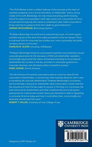 The Profit Motive addresses questions of corporate purpose using historical, legal, and economic perspectives. It counters proponents of social corporate responsibility and defends the maximization of shareholder value and shareholder capitalism, as both what the law requires and what it ought to require.