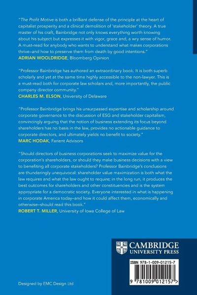 The Profit Motive addresses questions of corporate purpose using historical, legal, and economic perspectives. It counters proponents of social corporate responsibility and defends the maximization of shareholder value and shareholder capitalism, as both what the law requires and what it ought to require.