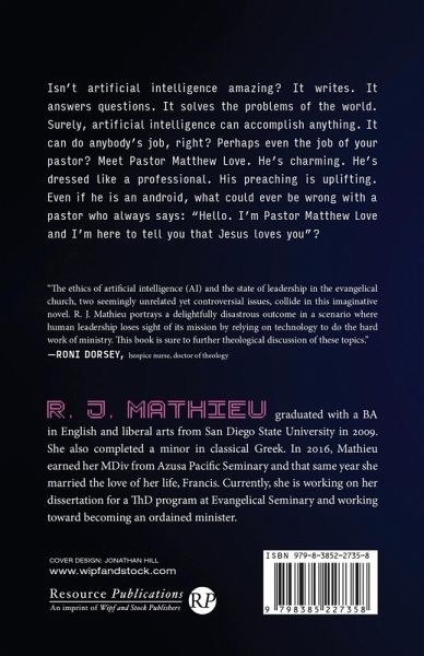 Isn't artificial intelligence amazing? It writes. It answers questions. It solves the problems of the world. Surely, artificial intelligence can accomplish anything. It can do anybody's job, right? Perhaps even the job of your pastor? Meet Pastor Matthew Love. He's charming. He's dressed like a professional. His preaching is uplifting. Even if he is an android, what could ever be wrong with a pastor who always says: "Hello. I'm Pastor Matthew Love and I'm here to tell you that Jesus loves you"?