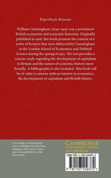 William Cunningham (1849-1919) was a prominent British economist and economic historian. Originally published in 1916, this book presents the content of a series of lectures that were delivered by Cunningham at the London School of Economics and Political Science during the spring of 1915. The text provides a concise study regarding the development of capitalism in Britain and the nature of economic history more broadly. A bibliography is also included. This book will be of value to anyone with an interest in economics, the development of capitalism and British history.