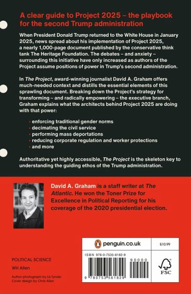 INSTANT NEW YORK TIMES BESTSELLER'Essential and authoritative. Sheds serious light on the dark money, dark ideas & dark souls propelling Trump's cruelty and betrayal of the USA' - James O'BrienIn the months leading up to the 2024 presidential election, news spread about Project 2025, a nearly 1,000-page document published by the conservative think tank The Heritage Foundation. The debates-and anxiety-surrounding this initiative have only increased as authors of the Project assume positions of power in the second Trump administration. So, what is Project 2025, exactly? Who wrote it, what does it actually say, and what does it mean for everyday people around the world, across the political spectrum, in the years to come?In The Project, award-winning journalist David A. Graham offers much-needed context and distills the essential elements of this sprawling document. Breaking down the Project's strategy for transforming-and radically empowering-the executive branch, Graham then explains what the architects behind Project 2025 would do with that power: restoring traditional gender norms and the supremacy of the nuclear family, decimating the civil service, performing mass deportations, reducing corporate regulation and worker protections, and more. Project 2025 is the intellectual blueprint for the new administration, Graham argues, and its tenets should not be legible only to policy wonks. Authoritative yet highly accessible, The Project demystifies it for those whose lives it will impact most.