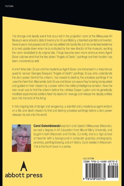 The strange and deadly event that occurred in the projection room at the Milwaukee Art Museum were almost a distant memory for Bruce Mallory, a talented scientist and inventor. Several years had passed and Bruce has settled into family life, but his contented existence is turned upside down when he is contacted by the new director of the museum, wanting the room reinstalled to its original site. Things become even more ominous when Agent Baker catches wind that the two stolen "Angels of Death," paintings and their location has been uncovered as well. A short time later, Bruce and the mysterious Agent Baker are immersed in a treacherous quest to recover Georges Bosque's "Angels of Death" paintings. Bruce, who understands the dark power behind the artwork, has vowed to destroy the priceless paintings if he unearths them first. Meanwhile, both Bruce and Baker are aware they're being manipulated and guided on their mission by a power within the military/intelligence echelon. Now the men must race to find the artwork before the ruthless Casper Layton and his genetically modified experimental soldiers feed his desire for revenge and release the deadly entities back into the land of the living. In this ongoing tale of danger and vengeance, a scientist and a mysterious agent embark on a life-and-death mission to find and destroy priceless paintings before a dark power releases his evil onto the world.