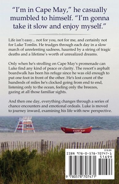 Weary from burden and broken by loss, Luke Tomlin wanders the famed Cape May promenade, an asphalt walkway that replaced the city's boardwalk generations ago. What begins as a leisurely stroll turns into a journey of self-discovery when Luke meets a chorus of people from varied backgrounds, each with a story to tell. An old injury forces him to take frequent breaks on different benches lining the promenade, allowing for conversations that leave a profound impact. Hearing their stories triggers deep-routed memories, many Luke would rather forget. He begins to question narratives that have dominated his life and ultimately finds himself confronting the specters of his past. Cape May's pristine beachfront has been a mecca for people seeking rest and rejuvenation since the 1700s. Walking along the promenade in "America's Oldest Seashore Resort," Luke's heart softens and his soul opens to healing and a peace he had long since thought was beyond his grasp.