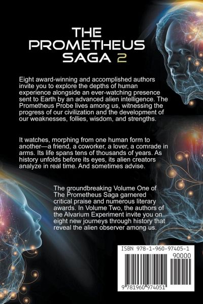 Eight award-winning and accomplished authors invite you to explore the depths of human experience alongside an ever-watching presence sent to Earth by an advanced alien intelligence. The Prometheus Probe lives among us, witnessing the progress of our civilization and the development of our weaknesses, follies, wisdom, and strengths.It watches, morphing from one human form to another-a friend, a coworker, a lover, a comrade in arms. Its life spans tens of thousands of years. As history unfolds before its eyes, its alien creators analyze in real time. And sometimes advise.The groundbreaking Volume One of The Prometheus Saga garnered critical praise and numerous literary awards. In Volume Two, the authors of the Alvarium Experiment invite you on eight new journeys through history that reveal the alien observer among us.