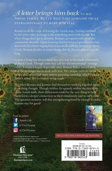 A letter brings him back to his Amish family. It will take someone truly extraordinary to make him stay. Roman is on the verge of leaving the Amish ways. Feeling confined by the strict rules, he longs to do something more with his life. But when things don't go as planned, Roman's prospects outside of the community dwindle. Upon learning that his beloved grandmother has died and left a letter urging him to reconcile with his brother in Birch Creek, Roman decides to return home. But he doesn't plan to stay for long. Leanna Chupp has always made her own way in her small community of Birch Creek. Though some may call her unconventional--strange, even--Leanna is happy. Her unique outlook on life has meant she's never had many suitors pursuing courtship, which Leanna doesn't mind. She is content being single. But when Roman and Leanna find themselves working together again, everything changes. Though neither fit squarely within the strictures of the Amish faith, their differences could be the very thing to help them form a deeper connection to their community and to each other. The question remains: will this strengthening bond be enough to make Roman stay for good?