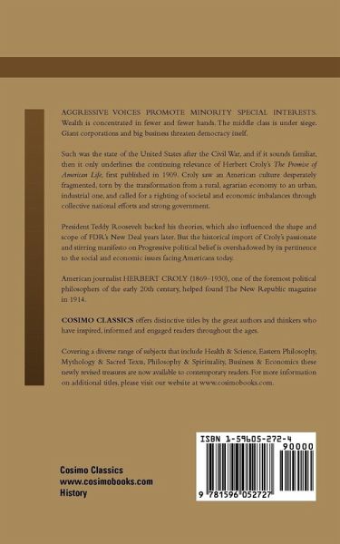 Aggressive voices promote minority special interests. Wealth is concentrated in fewer and fewer hands. The middle class is under siege. Giant corporations and big business threaten democracy itself. Such was the state of the United States after the Civil War, and if it sounds familiar, then it only underlines the continuing relevance of Herbert Croly's The Promise of American Life, first published in 1909. Croly saw an American culture desperately fragmented, torn by the transformation from a rural, agrarian economy to an urban, industrial one, and called for a righting of societal and economic imbalances through collective national efforts and strong government. President Teddy Roosevelt backed his theories, which also influenced the shape and scope of FDR's New Deal years later. But the historical import of Croly's passionate and stirring manifesto on Progressive political belief is overshadowed by its pertinence to the social and economic issues facing Americans today. American journalist HERBERT CROLY (1869-1930), one of the foremost political philosophers of the early 20th century, helped found The New Republic magazine in 1914.