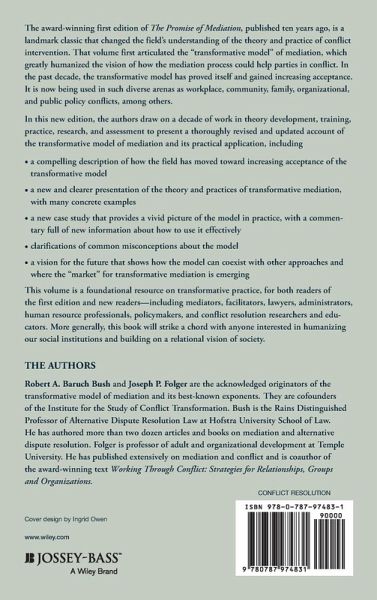 The award-winning first edition of The Promise of Mediation , published ten years ago, is a landmark classic that changed the field s understanding of the theory and practice of conflict intervention. That volume first articulated the "transformative model" of mediation, which greatly humanized the vision of how the mediation process could help parties in conflict. In the past decade, the transformative model has proved itself and gained increasing acceptance. It is now being used in such diverse arenas as workplace, community, family, organizational, and public policy conflicts, among others.