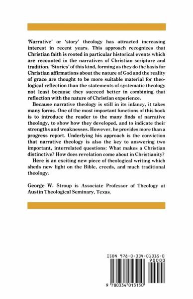 'Narrative' or 'story' theology has attracted increasing interest in recent years. This approach recognizes that Christian faith is rooted in particular historical events which are recounted in the narratives of Christian scripture and tradition. 'Stories' of this kind, forming as they do the basis for Christian affirmations about the nature of God and the reality of grace are thought to be more suitable material for theological reflection than the statements of systematic theology not least because they succeed better in combining that reflection with the nature of Christian experience. Because narrative theology is still in its infancy, it takes many forms. One of the most important functions of this book is to introduce the reader to the many finds of narrative theology, to show how they developed, and to indicate their strengths and weaknesses. However, he provides more than a progress report. Underlying his approach is the conviction that narrative theology is also the key to answering two important, interrelated questions: What makes a Christian distinctive? How does revelation come about in Christianity? Here is an exciting new piece of theological writing which sheds new light on the Bible, creeds, and much traditional theology.