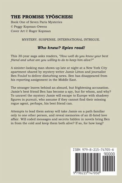 Cover Art © Roger Kopman. Who knew? Spies read! This 30-year saga asks readers, "How well do you know your best friend and what are you willing to do to keep him alive?"A sinister-looking man shows up late at night at a New York City apartment shared by mystery writer Jamie Litton and journalist Ben Foulof to deliver disturbing news. Ben has disappeared from his reporting assignment in the Middle East. The stranger leaves behind an absurd, but frightening accusation. Jamie's best friend Ben has become a spy, but for whom, and why?To unravel the mystery Jamie will escape to Europe with shadowy figures in pursuit, who assume if they cannot find their missing rogue agent, perhaps, his best friend can. Attempts to lead them astray will take Jamie on a path familiar only to one other person, and reveal memories of an ill-fated love affair. Will coded messages and secrets hidden in novels bring Ben in from the cold and keep them both alive? If so, for how long?