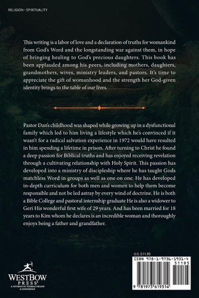 This writing is a labor of love and a declaration of truths for womankind from Gods Word and the longstanding war against them, in hope of bringing healing to Gods precious daughters. This book has been applauded among his peers, including mothers, daughters, grandmothers, wives, ministry leaders, and pastors. Its time to appreciate the gift of womanhood and the strength her God-given identity brings to the table of our lives.