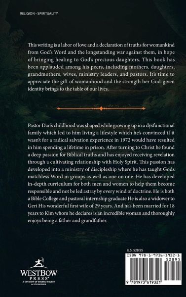 This writing is a labor of love and a declaration of truths for womankind from Gods Word and the longstanding war against them, in hope of bringing healing to Gods precious daughters. This book has been applauded among his peers, including mothers, daughters, grandmothers, wives, ministry leaders, and pastors. Its time to appreciate the gift of womanhood and the strength her God-given identity brings to the table of our lives.