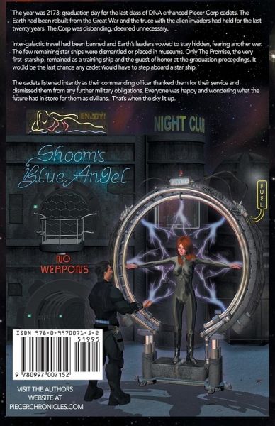 When the aliens attacked, humanity was nearly wiped out. There weren’t enough fighting men or women left alive to defend Earth. Desperate to survive, the Piecer Corp plan was initiated; thousands upon thousands of DNA manipulated recruits were created to defend Earth. But they needed them now, so they created the "Sixers," grown adult soldiers in as little as six years. It worked. They beat them back. A truce was called and Earth rebuilt. After twenty years, the Earth was repopulated, humanity salvaged; human soldiers could now take the place of manufactured Piecer Corp soldiers, ending the Corp. Current day: celebration for the graduation class of 2173. For the members of the Piecer Corp it was over. Chase 523, a Piecer fire team leader wondered if this was the last day he would see his team again. They could now live a normal life and take their place among the normally conceived humans, and start families of their own. To celebrate, the first Starship ever built, "The Promise", was flown to the stadium in their honor. The graduation ceremony was to be held in the Piecer Academy stadium. General Gilbert Tupi, a "normie" soldier presiding over the ceremony, congratulated them all and dismissed them from military service. That’s when the sky lit up.