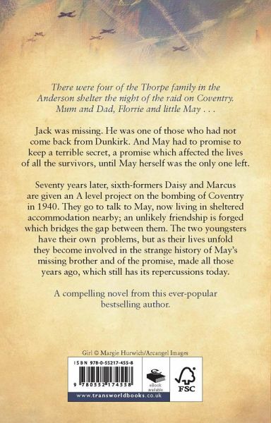 Wartime memories evoke both pain and happiness in this heart-warming novel from multi-million copy seller and Sunday Times bestselling author Susan Sallis. Readers of Rosamunde Pilcher Maeve Binchy and Fiona Valpy will not be disappointed. 'Sallis's West Country novel has the feel of Mary Wesley and character insight that is all her own' -- Daily Mail 'The thing about Susan Sallis's books - once you pick them up it's very hard to put them down!' -- ***** Reader review 'Brilliant' -- ***** Reader review 'Excellent read very enjoyable' - -- ***** Reader review 'Wonderful' - -- ***** Reader review ******************************************************************** THE ONLY PROMISE WORTH MAKING IS THE ONE YOU KEEP... There were four of the Thorpe family in the Anderson shelter the night of the raid on Coventry. Mum and Dad Florrie and little May.... Jack was missing. He was one of those who had not come back from Dunkirk. And May had to promise to keep a terrible secret a promise which affected the lives of all the survivors until May herself was the only one left. Seventy years later Daisy and Marcus sixth formers in a Gloucestershire School are given an A Level project on the bombing of Coventry in 1940. They go to talk to May now living in sheltered accommodation nearby. A friendship is forged which bridges the gap between them. The two youngsters have their own problems but as their lives unfold they become involved in the strange history of May's missing brother and of the promise made all those years ago which still has its repercussions today.