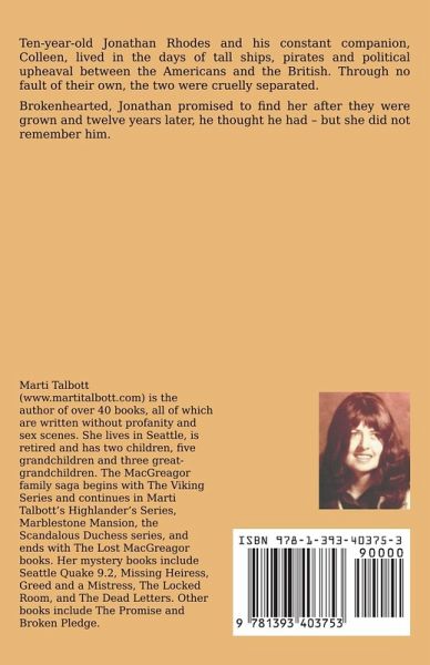Ten-year-old Jonathan Rhodes and his constant companion, Colleen, lived in the days of tall ships, pirates and political upheaval between the Americans and the British. Through no fault of their own, the two were cruelly separated. Brokenhearted, Jonathan promised to find her after they were grown and twelve years later, he thought he had – but she did not remember him.