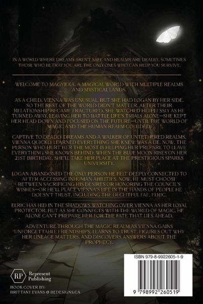 In a world where dreams aren't safe and realms are deadly, sometimes those who betray you are the only ones who can help you survive. Welcome to Magyieka. A magical world with multiple realms and mystical lands. As a child, Vienna was unusual, but she had Logan by her side, so the rest of the world didn't matter. After their relationship became fractured, she watched helplessly as he turned away, leaving her to battle life's trials alone-she kept her head down and focused on the future-until the World of Magic and the Human Realm collided. Captive to deadly dreams and a walker of untethered realms, Vienna quickly learned everything she knew was a lie. Now, the person who hurt her the most is helping her prepare to leave everything she knows behind. When the Blue Moon rises on her 21st birthday, she'll take her place at the prestigious Sparks University. Logan abandoned the only person he felt deeply connected to after accessing inhuman abilities. Now, he must choose between sacrificing his desires or honoring the Council's wishes-or he'll place Vienna's life in the hands of people he doesn't trust, including the deceitful Fae, Elric. Elric has hid in the shadows watching over Vienna as her loyal protector. But as she connects with the world of magic, he alone can't prepare her for the fate that lies ahead. Adventure through the Magic Realm as Vienna gains unforgettable friendships, learns to trust, figures out why her lineage matters, and discovers answers about The Prophecy. Join Logan, Elric, and Valda as they learn who Vienna truly is and what their destiny holds. Welcome to the other side . . . War of the Realms - X is the New Adult edition of the Young Adult War of the Realms series.