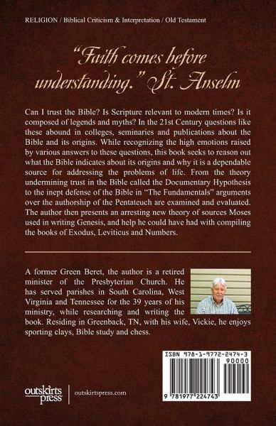 St. Anselm in the twelfth Century said, "I do not seek understanding in order to have faith, but faith leads me to seek understanding." The same was true for many of the Old Testament writers such as Joshua, Samuel, Jeremiah, Daniel and Ezra. And the same is true for the author of "The Prophet Moses: Leader, Teacher, Author, Judge." On several occasions while researching and writing the book, the author faced difficult questions of faith and began to seek God for answers. God did grant a measure of understanding and the result is this book. Not that the answers are necessarily the final ones, but they represent the beginning of a new direction in faith and reason. The biblical critics who sought to explain the origin of the books of Moses with the Documentary Hypothesis seem to have an attitude which puts intellect first and faith afterward, if at all. That theory reduces the Bible to the status of mythology or even superstition. With a new and innovative theory gained from faith, prayer, study and the grace of God, the author has written a criticism of the critics and has received fresh insight into the Bible as the Word of God. The assumptions and speculations of the Bible's most persistent critics are found lacking in both reason and evidence. With this new theory in hand, students and people in the pews can launch into personal study of the Bible with renewed confidence that they will find God's answers to life's great questions.