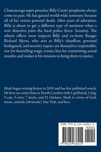 Chattanooga super preacher Billy Curtis' prophesies always come to pass. He has gained world-wide notoriety because his visions portend death. After years of adoration, Billy is about to get a different type of attention when a new detective joins the local police force: Scrutiny. The atheist officer soon suspects Billy and Richard Myers, who acts as his chauffeur, personal bodyguard, and security expert, are themselves responsible, not for innocently foretelling tragic events, but for committing actual murder and makes it his mission to bring them to justice.