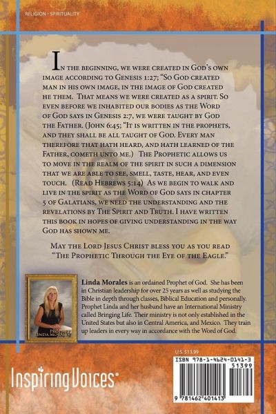 In the beginning, we were created in God's own image according to Genesis 1:27; "So God created man in his own image, in the image of God created he them. That means we were created as a spirit. So even before we inhabited our bodies as the Word of God says in Genesis 2:7, we were taught by God the Father. (John 6:45; "It is written in the prophets, and they shall be all taught of God. Every man therefore that hath heard, and hath learned of the Father, cometh unto me.) The Prophetic allows us to move in the realm of the spirit in such a dimension that we are able to see, smell, taste, hear, and even touch. (Read Hebrews 5:14) As we begin to walk and live in the spirit as the Word of God says in chapter 5 of Galatians, we need the understanding and the revelations by The Spirit and Truth. I have written this book in hopes of giving understanding in the way God has shown me. May the Lord Jesus Christ bless you as you read "The Prophetic Through the Eye of the Eagle."