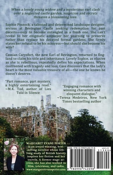 When a lonely young widow and a mysterious earl clash over a neglected castle garden, suspicion and secrets threaten a blossoming love. Sophie Pinnock, a talented and determined landscape designer, arrives at Bevington Castle seeking redemption for past deceits-only to become entangled in a fresh one. She can't reveal to her enigmatic employer her yearning to preserve rather than replace his decayed formal gardens. And she firmly declares her reluctance to be his mistress. But should she become his wife? Cassian Carysfort, the new Earl of Bevington, returned to England to claim his title and inheritance. Lovely Sophie, as elusive as she is rebellious, repeatedly defies his expectations. When confronted with tragedy and loss, Cass discovers that the lady's heart is the most valuable treasure of all-the one he knows he doesn't deserve.