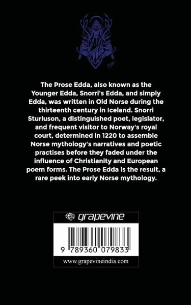 The Prose Edda, also known as the Younger Edda, Snorri's Edda, and simply Edda, was written in Old Norse during the thirteenth century in Iceland. Snorri Sturluson, a distinguished poet, legislator, and frequent visitor to Norway's royal court, determined in 1220 to assemble Norse mythology's narratives and poetic practises before they faded under the influence of Christianity and European poem forms. The Prose Edda is the result, a rare peek into early Norse mythology.