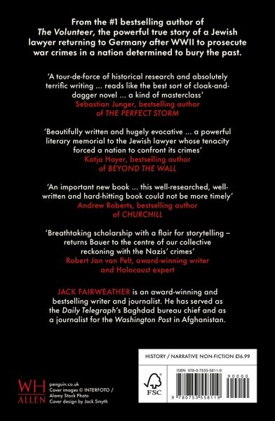 In The Prosecutor, Jack Fairweather brings to life the remarkable story of Fritz Bauer, a gay German Jew who survived the Nazis and made it his mission to force his countrymen to confront their complicity in the genocide. In this deeply researched book, Fairweather draws on unpublished family papers, newly declassified German records, and exclusive interviews to immerse readers in the dark, unfamiliar world of postwar West Germany where those who implemented genocide run the country, the CIA is funding Hitler's former spy-ring in the east, and Nazi-era anti-gay laws are strictly enforced. But once Bauer lands on the trail of Adolf Eichmann, he won't be intimidated. His journey takes him deep into the rotten heart of West Germany, where his fight for justice will set him against his own government and a network of former Nazis and spies determined to silence him.