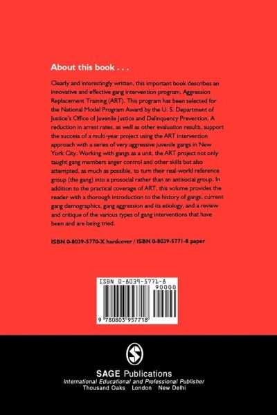 An effective gang intervention programme, Aggression Replacement Training (ART), is the subject of this book. Rearrest rates and other outcome results support the success of a project using the ART intervention approach with a series of very aggressive juvenile gangs in New York. Working with gangs as a unit, the goal was not only to teach them anger control and other skills, but to do so in such a way that their real-world reference group (the gang) was turned, as much as possible, into a prosocial rather than an antisocial support group. In addition, the book provides a thorough introduction to the history of gangs, current gang demographics, gang aggression and its etiology, as well as a review and critique of the various interventions that have been tried.