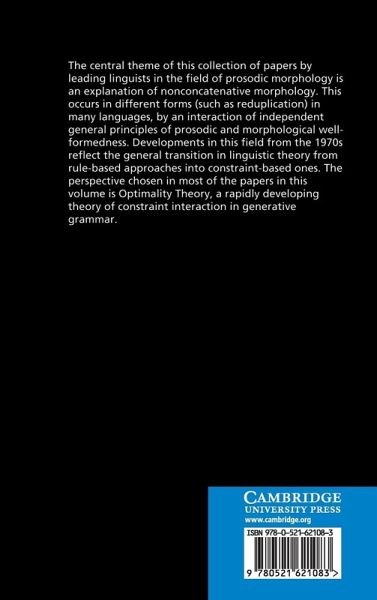 In many languages, word-formation is restricted by principles of prosody that organise speech into larger units such as the syllable. Written by an international team of leading linguists in the field of prosodic morphology, this book examines a range of key issues in the interaction of word-formation and prosody. It provides an explanation for non-concatenative morphology which occurs in different forms (such as reduplication) in many languages, by an interaction of independent general principles of prosodic and morphological well-formedness. Surveying developments in the field from the 1970s, the book describes the general transition in linguistic theory from rule-based approaches into constraint-based ones, and most of the contributions are written from the perspective of Optimality Theory, a rapidly developing theory of constraint interaction in generative grammar.