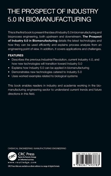 This is the first book to present the idea of Industry 5.0 in biomanufacturing and bioprocess engineering, both upstream and downstream. It details the latest technologies and how they can be used efficiently and explains process analysis from an engineering point of view. It covers applications and challenges.