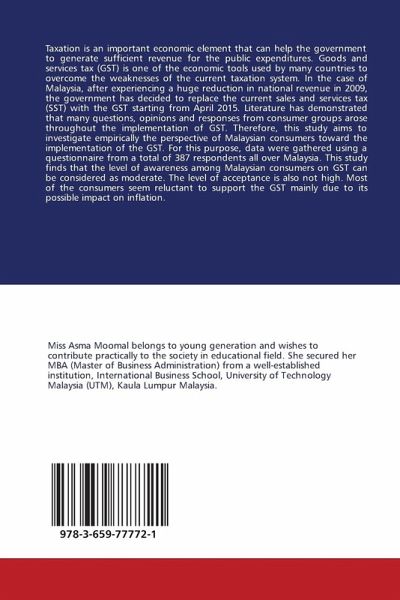 Taxation is an important economic element that can help the government to generate sufficient revenue for the public expenditures. Goods and services tax (GST) is one of the economic tools used by many countries to overcome the weaknesses of the current taxation system. In the case of Malaysia, after experiencing a huge reduction in national revenue in 2009, the government has decided to replace the current sales and services tax (SST) with the GST starting from April 2015. Literature has demonstrated that many questions, opinions and responses from consumer groups arose throughout the implementation of GST. Therefore, this study aims to investigate empirically the perspective of Malaysian consumers toward the implementation of the GST. For this purpose, data were gathered using a questionnaire from a total of 387 respondents all over Malaysia. This study finds that the level of awareness among Malaysian consumers on GST can be considered as moderate. The level of acceptance is also not high. Most of the consumers seem reluctant to support the GST mainly due to its possible impact on inflation.