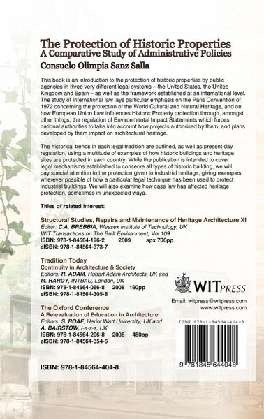 This book introduces the protection of historic properties by public agencies in three very different legal systems - the United States, the United Kingdom and Spain - as well as analyses international efforts to protect historic heritage. It is not intended as a comprehensive study of any of the legal systems, but rather as a tool to give the reader the chance to compare the legal techniques used in each different administrative system. The historical trends in each legal tradition are outlined, as well as present-day regulation, using a multitude of examples of how historic buildings and heritage sites are protected in each country. While the publication is intended to cover legal mechanisms established to conserve all types of historic buildings, the author pays special attention to the protection given to industrial heritage, giving examples wherever possible of how a particular legal technique has been used to protect industrial buildings. She also examines how case law has effected heritage protection, sometimes in unexpected ways.