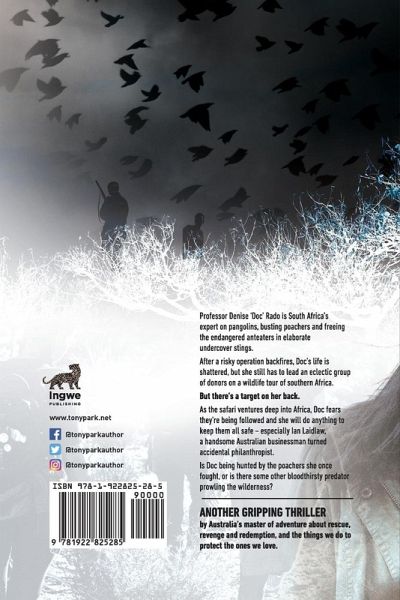 Professor Denise 'Doc' Rado is South Africa's expert on pangolins, busting poachers and freeing the endangered anteaters in elaborate undercover stings. After a risky operation backfires, Doc's life is shattered, but she still has to lead an eclectic group of donors on a wildlife tour of southern Africa. But there's a target on her back. As the safari ventures deep into Africa, Doc fears they're being followed and she will do anything to keep them all safe - especially Ian Laidlaw, a handsome Australian businessman turned accidental philanthropist. Is Doc being hunted by the poachers she once fought, or is there some other bloodthirsty predator prowling the wilderness? Another gripping thriller by the master of adventure about rescue, revenge and redemption, and the things we do to protect the ones we love.