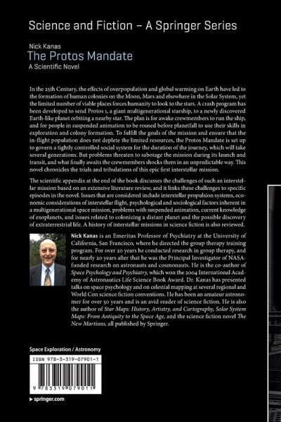 In the 25th Century, the effects of overpopulation and global warming on Earth have led to the formation of human colonies on the Moon, Mars and elsewhere in the Solar System, yet the limited number of viable places forces humanity to look to the stars. A crash program has been developed to send Protos 1, a giant multigenerational star ship, to a newly discovered Earth-like planet orbiting a nearby star. The plan is for awake crewmembers to run the ship and for people in suspended animation to be roused before planet fall to use their skills in exploration and colony formation. To fulfill the goals of the mission and ensure that the in-flight population does not deplete the limited resources, the Protos Mandate is set up to govern a tightly controlled social system for the duration of the journey, which will take several generations. But problems threaten to sabotage the mission during its launch and transit and what finally awaits the crewmembers shocks them in anunpredictable way. This novel chronicles the trials and tribulations of this epic first interstellar mission.The scientific appendix at the end of the book discusses the challenges of such an interstellar mission based on an extensive literature review and it links these challenges to specific episodes in the novel. Issues that are considered include interstellar propulsion systems, economic considerations of interstellar flight, psychological and sociological factors inherent in a multigenerational space mission, problems with suspended animation, current knowledge of exoplanets and issues related to colonizing a distant planet and the possible discovery of extraterrestrial life. A history of interstellar missions in science fiction is also reviewed.Nick Kanas is an Emeritus Professor of Psychiatry at the University of California, San Francisco, where he directed the group therapy training program. For over 20 years he conducted research on group therapy, and for nearly 20 years after that he was the Principal Investigator of NASA-funded research on astronauts and cosmonauts. He is the co-author of Space Psychology and Psychiatry, which won the 2004 International Academy of Astronautics Life Science Book Award, and the author of Humans in Space: The Psychological Hurdles, which won the 2016 International Academy of Astronautics Life Science Book Award.