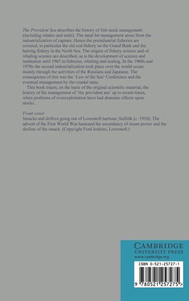 The Provident Sea describes the history of fish stock management (including whales and seals). The need for management arose from the industrialization of capture. Hence the preindustrial fisheries are covered, in particular the old cod fishery on the Grand Bank and the herring fishery in the North Sea. The origins of fishery science and of whaling science are described, as it the development of science and institution until 1965 in fisheries, whaling and sealing. In the 1960s and 1970s the second industrialization took place over the world ocean mainly through the activities of the Russians and Japanese. The consequence of this was the 'law of the Sea' Conference and the eventual management by the coastal state. This book traces, on the basis of the original scientific material, the history of the management of 'the provident sea' up to recent times, when problems of overexploitation have had dramatic effects upon stocks.