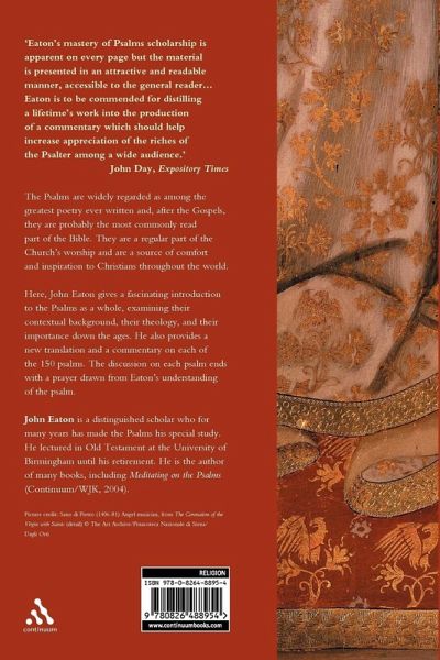 Remarkably enough, there is a scarcity of modern commentaries on the Psalms for the more general reader, though after the Gospels, they are probably the most widely-read part of the Bible. No one is more qualified to write on the Psalms than John Eaton. He is a distinguished Old Testament scholar and has spent a lifetime studying the Psalms. This commentary is addressed to the wide readership. There is a long and highly readable introduction giving a background to the Psalms; then follow the 150 Psalms, each in Eaton's translation. He explains the background to the Psalms and their content in a way that makes them interesting and relevant to the present. The discussion of each psalm ends with a related Christian prayer, either from the tradition or written by Eaton himself. John Eaton is recognized as one of the world's leading experts on Psalms: this commentary is the culmination of his life's work. John Eaton lectured in Old Testament at the University of Birmingham until his retirement. He is the author of many books, especially on aspects of the Psalms.