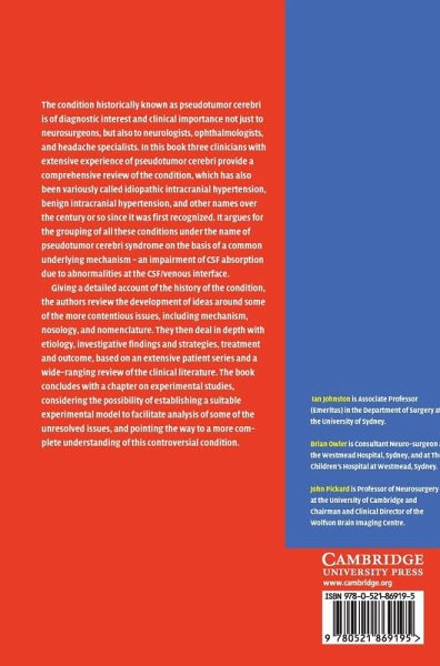 The condition known most widely as pseudotumor cerebri syndrome is of diagnostic interest and clinical importance not just to neurosurgeons, but also to neurologists, ophthalmologists and headache specialists. Variously called idiopathic intracranial hypertension, benign intracranial hypertension, and other names over the century or so since it was first recognised, the authors argue for the grouping of all these conditions under the name of pseudotumor cerebri syndrome on the basis of a common underlying mechanism - an impairment of CSF absorption due to abnormalities at the CSF/venous interface. The book reviews the development of ideas around some of the more contentious issues and deals in depth with aetiology, investigative findings and strategies, treatment and outcome, and in the concluding chapter, considers the possibility of establishing an experimental model to facilitate analysis of the unresolved issues, and pointing the way to a more complete understanding of this controversial condition.