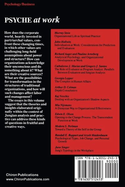 How does the corporate world, heavily invested in patriarchal values, confront these changing times, in which other values are challenging long-held assumptions about power and structure? How can organizations acknowledge their unconscious and do something about it? What are their creative sources? What are the possibilities for transformation in the structures of traditional organizations, and how will such changes affect labor and management? The essays in this volume suggest that the theories and insights elaborated originally within the context of Jungian analysis and practice can address these kinds of questions in fruitful and creative ways. Murray Stein - Organizational Life as Spiritual Practice John Hollwilz - Individuation at Work: Considerations for Prediction and Evaluation Richard Auger and Pauline Arneberg - Analytical Psychology and Organizational Development at Work Cathaleene J. Macias and Gregory J. Santos - The Role of Evaluator as Program Analyst: Parallels Between Evaluation and Jungian Analysis Georgia Lepper - The Complex in Human Affairs Arthur D. Colman - Depth Consultation Kaj Noschis Dealing with an Organization's Shadow Aspects Mia Nijsmans - A Dionysian Way to Organizational Effectiveness Edwin E. Olson - Opening to the Change Process: The Transcendent Function at Work Medora S. Perlman - Toward a Theory of the Self in the Group Randal E. Ruppart and Aryeh Maidenbaum - Psychological Types, Job Change, and Personal Growth June Singer - Jung's Typology in the Workplace The organization we work for has a psyche of its own, a "collective personality" and an organizational imagination, which goes to work on us, for better or for worse. In this volume, the work of analytical psychologists, organizational development consultants, and group relations theorists reflect on the contemporary enigma presiding over an organization’s unconscious. Insights form a Jungian perspective on power structures, personal relations, organizational problems and business-building in the workplace. Murray Stein, Ph.D. is a supervising training analyst and former president of The International School of Analytical Psychology in Zurich, Switzerland (ISAP Zurich). His most recent books include Outside Inside and All Around, Minding the Self and The Principle of Individuation. From 2001 to 2004 he was president of the International Association for Analytical Psychology. He lectures internationally on topics related to Analytical Psychology and its applications in the contemporary world. He is publisher emeritus of Chiron Publications and is the focus of many Asheville Jung Center online seminars.