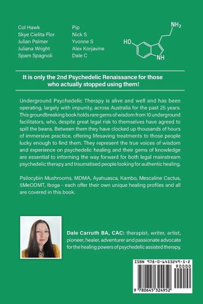 It is only the 2nd Psychedelic Renaissance for those who actually stopped using them! Underground Psychedelic Therapy is alive and well and has been operating, largely with impunity, across Australia for the past 25 years. This book holds gems of wisdom from 10 underground facilitators who, despite great legal risk to themselves have agreed to spill the beans. Between them they have clocked up thousands of hours of immersive practice, offering lifesaving treatments to those people lucky enough to find them. They represent the true voices of wisdom and experience on psychedelic healing and their gems of knowledge seem essential to informing the way forward for both legal mainstream psychedelic therapy and traumatised people looking for authentic healing. Psilocybin Mushrooms, MDMA, Ayahuasca, Kambo, Mescaline Cactus, 5-MeODMT, Iboga - each offer their own unique healing profiles and all are covered in this book.