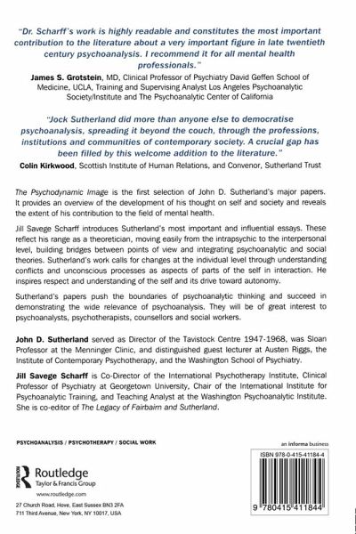 The Psychodynamic Image is the first selection of John D. Sutherland's major papers. It provides an overview of the development of his thought on self and society and reveals the extent of his contribution to the field of mental health. Jill Savege Scharff introduces Sutherland's most important and influential essays. These reflect his range as a theoretician, moving easily from the intrapsychic to the interpersonal level, building bridges between points of view and integrating psychoanalytic and social theories. Sutherland's work calls for changes at the individual level through understanding conflicts and unconscious processes as aspects of parts of the self in interaction. He inspires respect and understanding of the self and its drive toward autonomy. These papers push the boundaries of psychoanalytic thinking and succeed in demonstrating the relevance of psychoanalysis to the wider society. They will be of great interest to psychoanalysts, psychotherapists, counsellors and social workers.