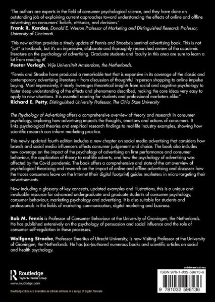 This newly updated fourth edition includes a new chapter on social media advertising that considers how brands and social media influencers affects consumer judgement and choice. The book also includes new coverage on the impact of the psychology of advertising on firm performance or consumer behaviour, the application of theory to real-life adverts, and how the psychology of advertising was affected by the covid pandemic. The book offers a comprehensive and state-of-the art overview of psychological theorizing and research on the impact of online and offline advertising and discusses how the traces consumers leave on the Internet (their digital footprint) guides marketers in micro-targeting their advertisements.