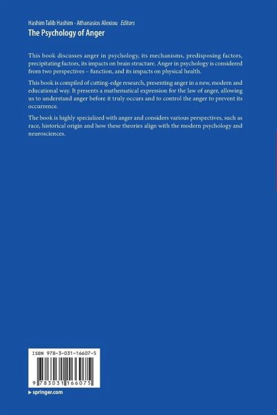 This book discusses anger in psychology, its mechanisms, predisposing factors, precipitating factors, its impacts on brain structure. Anger in psychology is considered from two perspectives - function, and its impacts on physical health.