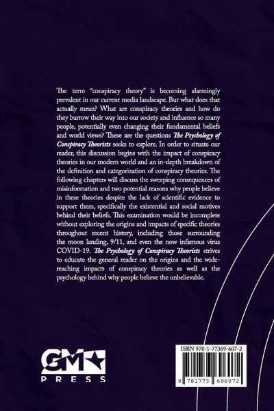 The term "conspiracy theory" is becoming alarmingly prevalent in our current media landscape. But what does that actually mean? What are conspiracy theories and how do they burrow their way into our society and influence so many people, potentially even changing their fundamental beliefs and world views? These are the questions The Psychology of Conspiracy Theorists seeks to explore. In order to situate our reader, this discussion begins with the impact of conspiracy theories in our modern world and an in-depth breakdown of the definition and categorization of conspiracy theories. The following chapters will discuss the sweeping consequences of misinformation and two potential reasons why people believe in these theories despite the lack of scientific evidence to support them, specifically the existential and social motives behind their beliefs. This examination would be incomplete without exploring the origins and impacts of specific theories throughout recent history, including those surrounding the moon landing, 9/11, and even the now infamous virus COVID-19. The Psychology of Conspiracy Theorists strives to educate the general reader on the origins and the wide-reaching impacts of conspiracy theories as well as the psychology behind why people believe the unbelievable.