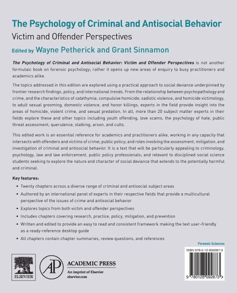 The Psychology of Criminal and Antisocial Behavior: Victim and Offenders Perspectives is not just another formulaic book on forensic psychology. Rather, it opens up new areas of enquiry to busy practitioners and academics alike, exploring topics using a practical approach to social deviance that is underpinned by frontier research findings, policy, and international trends.
